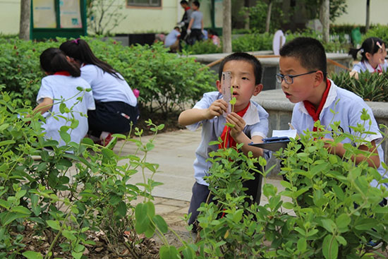 五一小學學生在該校“百草園”里勞動。韋豹/攝
