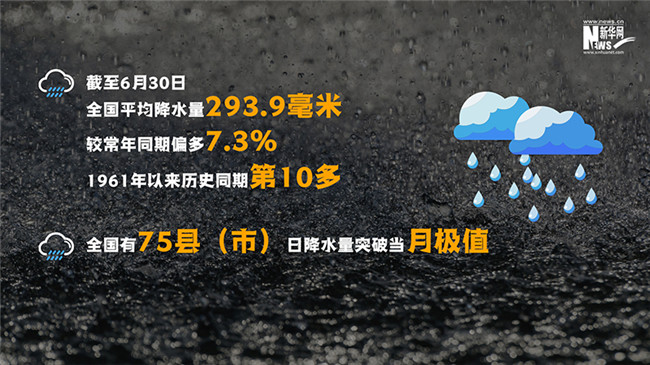 入汛以來(lái),全國(guó)有75縣(市)日降水量突破當(dāng)月極值,有9縣(市)日降水量打破當(dāng)?shù)貧v史紀(jì)錄。