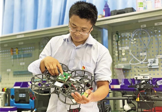王新懷展示學(xué)生制作的無人機(jī)。