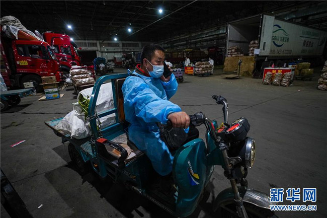凌晨的新疆九鼎農(nóng)產(chǎn)品批發(fā)交易市場異常忙碌。各式蔬菜在這里匯集,大批菜商搶抓時間采購,他們采用“螞蟻搬家”的方式要將蔬菜趕在9點鐘之前放在直銷點的貨柜上,方便居民選購。陳金奇就是其中之一。 陳金奇負責的烏魯木齊市沙依巴克區(qū)揚子江街道青松苑社區(qū)蔬菜直銷點輻射三個小區(qū)和一家醫(yī)院。“從這次烏魯木齊發(fā)生疫情以來,我們一直沒有關(guān)門,開足馬力滿足周邊居民的生活需求。”陳金奇說。 凌晨四點是陳金奇一天忙碌的開始。這一刻,他開著面包車驅(qū)車20分鐘前往烏魯木齊最大的一級農(nóng)副產(chǎn)品批發(fā)交易市場——新疆九鼎農(nóng)產(chǎn)品批發(fā)交易市場采購。 經(jīng)過嚴格的防疫處理后,陳金奇進入市場。為提高效率,他放下面包車換駕電動三輪車穿行在這座龐大的市場里。“黃瓜多少錢?西紅柿多少錢?小白菜多少錢……”在新鮮、價格和速度中,陳金奇總能找到最好的結(jié)合點。 經(jīng)歷了兩個半小時,總重超過一噸的新鮮蔬菜分四批采購?fù)瓿裳b入面包車里。“現(xiàn)在市場里各類蔬菜是比較豐富的,山東的生姜、五家渠的芹菜、河南的蒜苔等都能順利買到。”陳金奇介紹,現(xiàn)在最重要的是快速將這些鮮菜送到居民手中。 忙碌了近三個小時,這座城市的天際線慢慢顯露出來。陳金奇在回程的汽車上,黎明時分的金色陽光映照著他黝黑的臉龐。“做好自己的事情就足夠了,我就是要盡全力讓居民吃上新鮮蔬菜。” 一年只有年三十和初一才能休息的陳金奇知道,現(xiàn)在這座城市比任何時候都需要他。