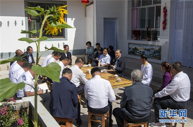 這是會前,汪洋在康樂縣與省市縣鄉(xiāng)村五級扶貧干部座談,聽取關于鞏固脫貧成果與鄉(xiāng)村振興有效銜接的建議。 新華社記者 李學仁 攝
