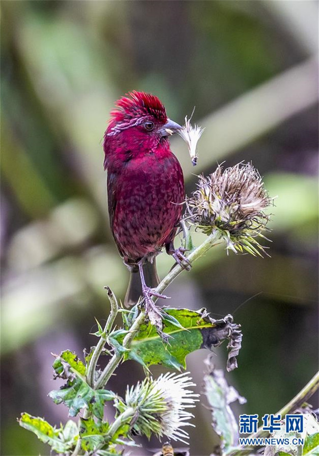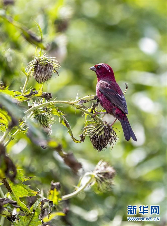 8月23日在金佛山自然保護(hù)區(qū)拍攝的酒紅朱雀。 每年7月至9月,活躍于重慶市南川區(qū)金佛山上的酒紅朱雀是當(dāng)?shù)匾坏懒聋惖娘L(fēng)景。 新華社發(fā)(瞿明斌 攝)