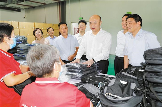 9月2日,省委書記劉國中到咸陽市、銅川市調(diào)研脫貧攻堅。圖為他在銅川市印臺區(qū)順金社區(qū)詢問社區(qū)工廠貧困戶收入情況。記者 張辰攝