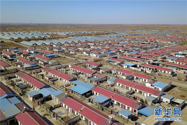這是古浪縣黃花灘生態(tài)移民區(qū)感恩新村住房及日光溫室大棚(3月10日攝,無(wú)人機(jī)照片)。 新華社記者 范培珅 攝