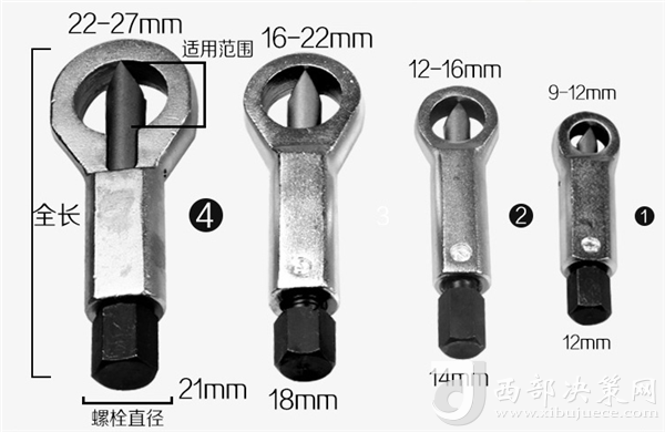 據(jù)井下工人反饋,該工具使用方法非常簡單,只需選擇孔徑合適的螺母分離器套在銹死的螺母上,然后用扳手夾禁尾部六方頭,順時針旋轉(zhuǎn)六角轉(zhuǎn)頭,使得尖刀頭切入螺母內(nèi),這時就解決了滑絲的問題,可以拆卸螺母,如果還是拆不下來,則繼續(xù)旋轉(zhuǎn)轉(zhuǎn)頭,直接把螺母切斷。