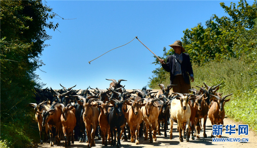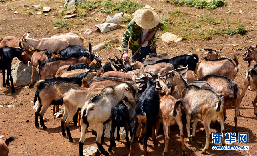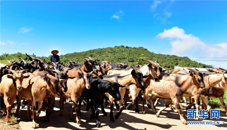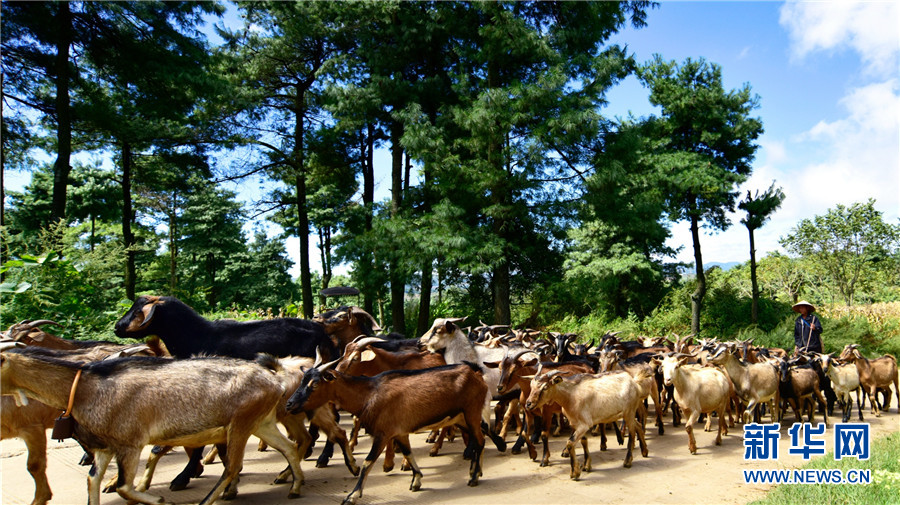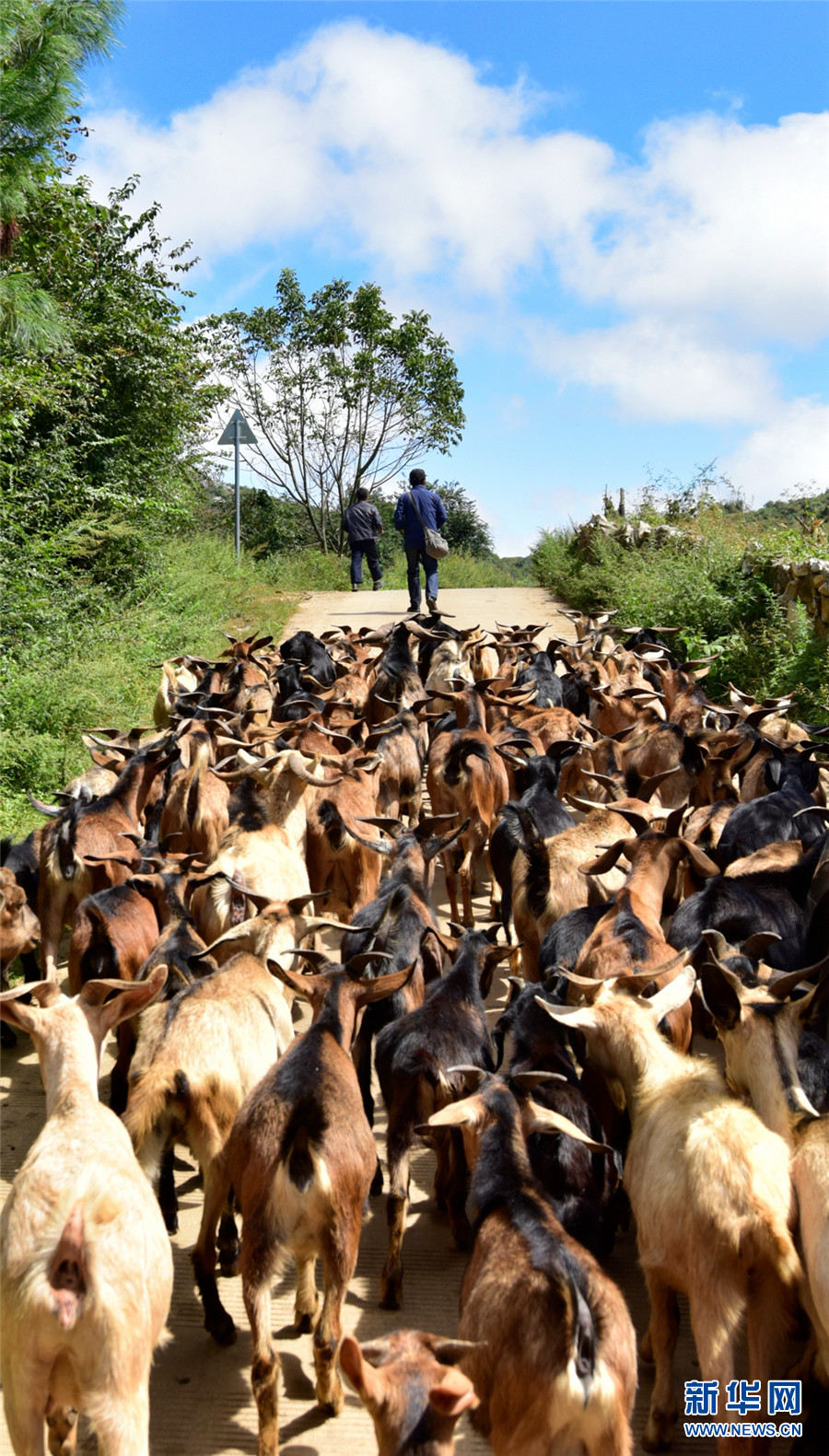 在云南省彌勒市東山鎮(zhèn)舍母村委會小橫山村,當地利用生態(tài)草場優(yōu)勢大力發(fā)展生態(tài)羊養(yǎng)殖,戶均養(yǎng)殖100多只,成為村民們的致富新手段。(10月11日攝)。新華網發(fā)(普佳勇 攝)