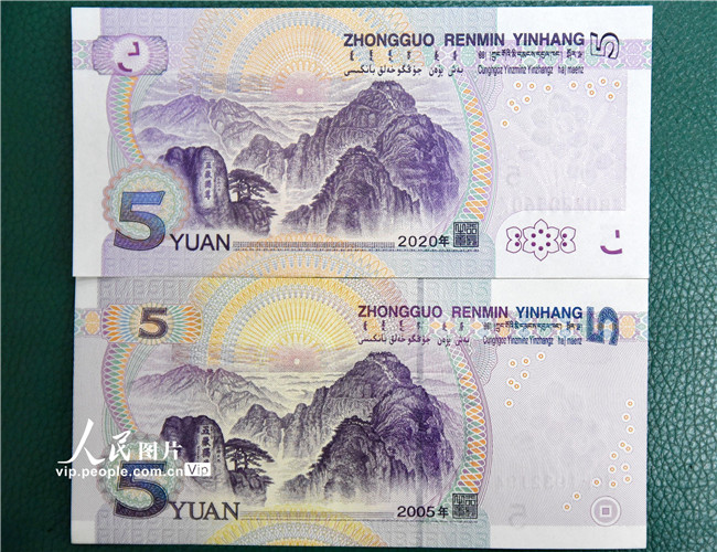 2020年11月5日,中國(guó)人民銀行發(fā)行2020年版第五套人民幣5元紙幣。據(jù)了解,2020年版第五套人民幣5元紙幣保持2005年版第五套人民幣5元紙幣規(guī)格、主圖案、主色調(diào)、“中國(guó)人民銀行”行名、國(guó)徽、盲文面額標(biāo)記、漢語(yǔ)拼音行名、民族文字等要素不變,優(yōu)化了票面結(jié)構(gòu)層次與效果,提升了整體防偽性能,票面年號(hào)改為“2020年”。郝群英/人民圖片