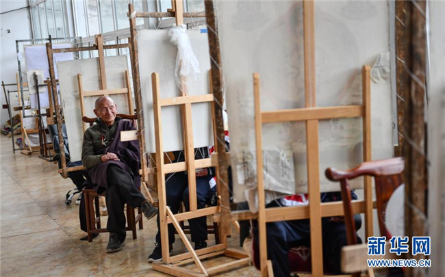 嘎瑪?shù)吕绽先嗽谖鞑夭际锌ㄈ魠^(qū)嘎瑪鄉(xiāng)的民族手工藝培訓(xùn)基地里教學(xué)員們畫唐卡(10月3日攝)。新華社記者 普布扎西 攝