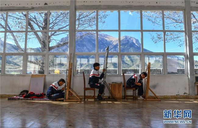 在西藏昌都市卡若區(qū)嘎瑪鄉(xiāng)的民族手工藝培訓(xùn)基地,學(xué)員在學(xué)習(xí)畫唐卡(10月3日攝)。新華社記者 晉美多吉 攝
