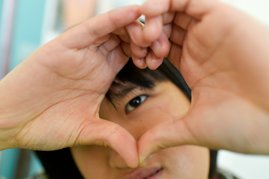 11月9日,貴州省遵義市鳳岡縣特殊教育學(xué)校,一名學(xué)生在教室里上課時(shí)對(duì)著照相機(jī)做心形手勢(shì)。