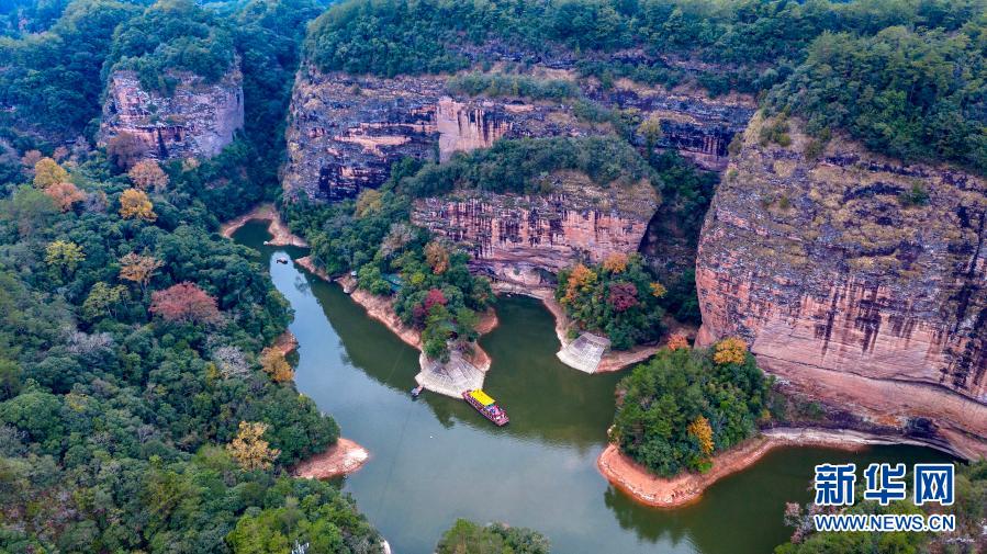 這是12月9日拍攝的福建省三明市泰寧縣大金湖景區(qū)的水上丹霞景觀(無人機(jī)照片)。新華社記者 姜克紅 攝
