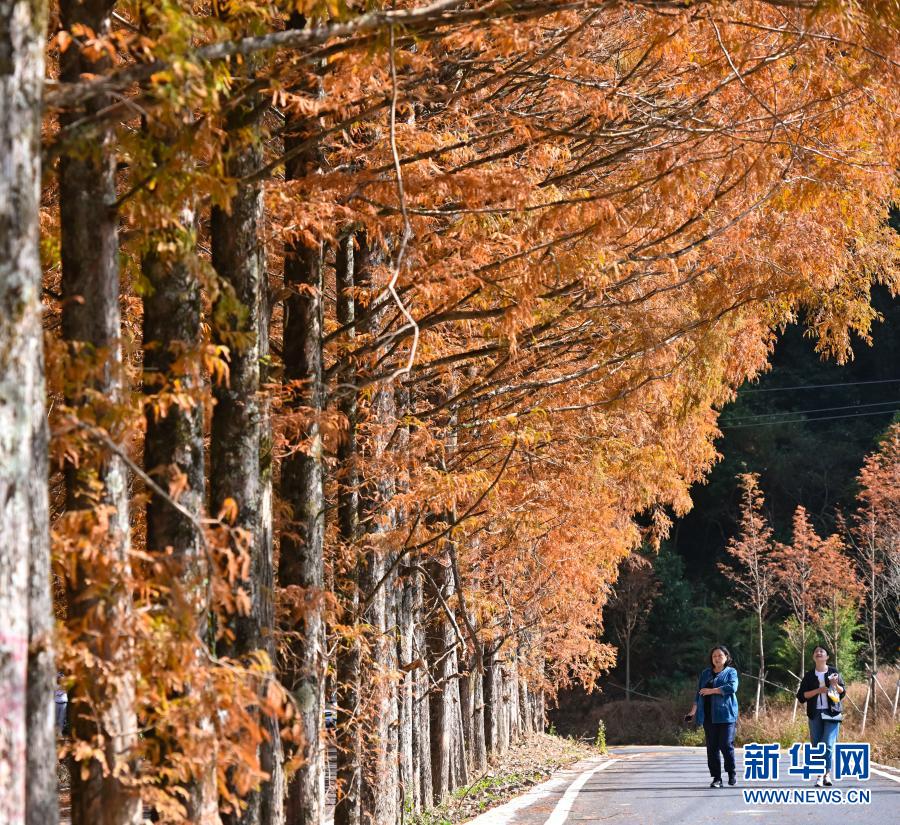 游客在福建省三明市將樂縣龍棲山國家級(jí)自然保護(hù)區(qū)水杉大道游覽(11月20日攝)。新華社記者 宋為偉 攝
