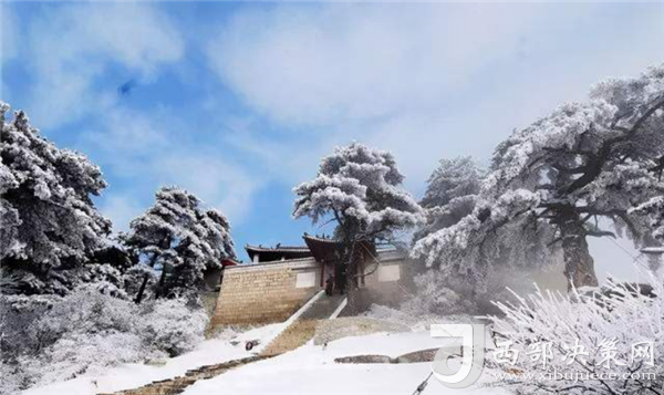 金天宮,建造得金碧輝煌,從遠(yuǎn)處看白雪覆蓋下的道觀很惹眼……