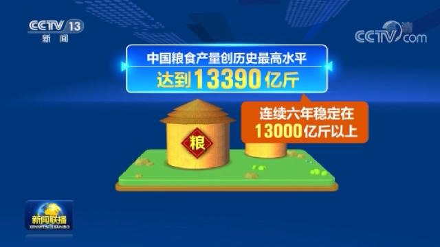 2020年,面對(duì)新冠肺炎疫情和不利天氣影響,中國糧食產(chǎn)量創(chuàng)歷史最高水平,達(dá)到13390億斤,連續(xù)六年穩(wěn)定在13000億斤以上。