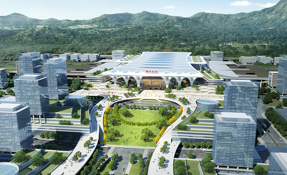 以重慶東站鐵路綜合交通樞紐的設(shè)計為例,該樞紐在設(shè)計時以城市綜合交通中心為核心,樞紐及周邊布置商業(yè),強化站城聯(lián)系,融合交通、商業(yè)、餐飲、休閑、文化、娛樂、景觀等多種功能于一體進行規(guī)劃建設(shè),形成統(tǒng)一開放的“山、景、城”融合一體的城市公共空間。
