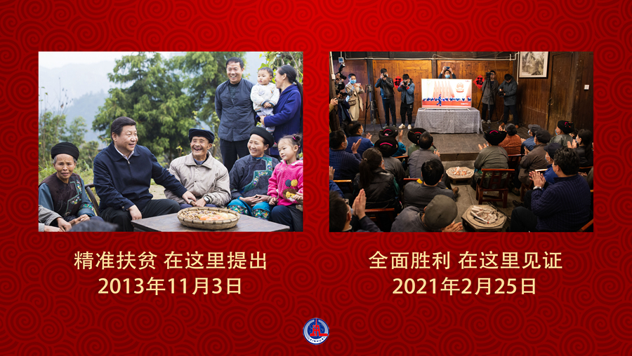 左圖:2013年11月3日下午,習(xí)近平總書記在湖南省湘西土家族苗族自治州花垣縣排碧鄉(xiāng)十八洞村同村干部和村民座談,在此首次提出“精準(zhǔn)扶貧”(新華社記者 王曄 攝)。