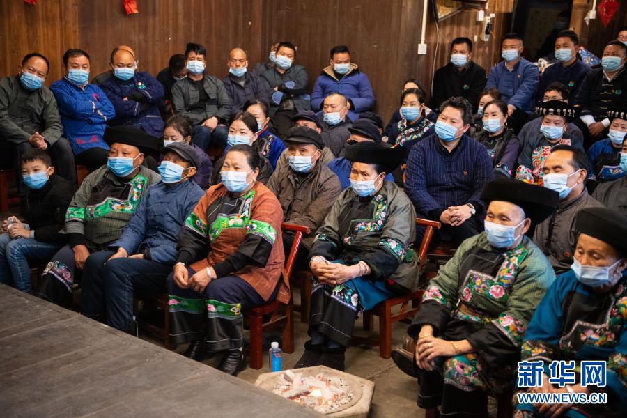 2月25日上午,在湖南省湘西土家族苗族自治州花垣縣十八洞村,當(dāng)?shù)馗刹?、群眾在一戶村民家收看全國脫貧攻?jiān)總結(jié)表彰大會直播。新華社記者 陳思汗 攝