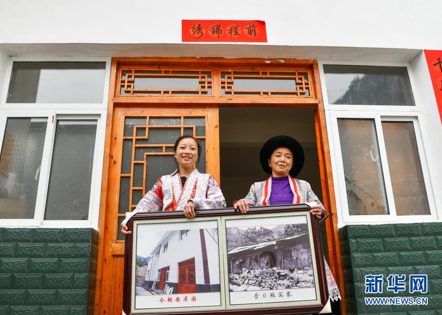 2月20日,在貴州省畢節(jié)市黔西縣新仁苗族鄉(xiāng)化屋村麻窩寨易地扶貧搬遷集中安置點(diǎn),苗族女孩王代玉(左)與母親楊文梅在自家新房前展示易地扶貧搬遷前后的對(duì)比照片。近年來(lái),化屋村在實(shí)施易地扶貧搬遷的同時(shí),大力發(fā)展特色種植、養(yǎng)殖、旅游等產(chǎn)業(yè),村里迎來(lái)跨越式發(fā)展。 新華社記者 楊文斌 攝