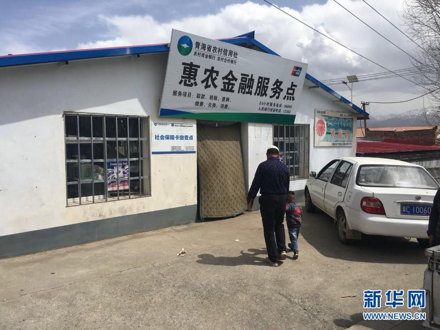 青海省海北藏族自治州門源回族自治縣西沙河村村民前往該村的惠農(nóng)金融服務(wù)點(diǎn)辦理業(yè)務(wù)(2018年5月3日攝)。新華社記者 徐文婷 攝