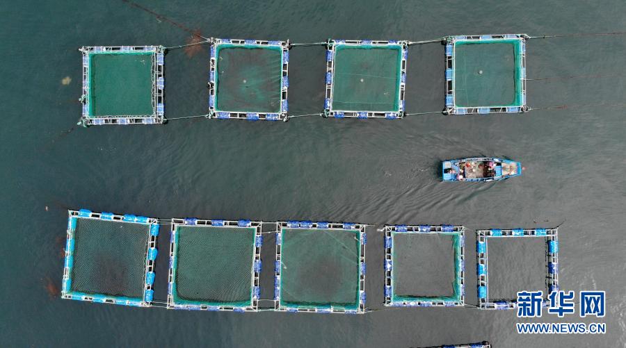 一艘漁船駛過(guò)山東省長(zhǎng)島綜合試驗(yàn)區(qū)南隍城島海上養(yǎng)殖區(qū)(2020年8月8日攝,無(wú)人機(jī)照片)。近年來(lái),山東省長(zhǎng)島綜合試驗(yàn)區(qū)南隍城島在嚴(yán)守海洋生態(tài)紅線的基礎(chǔ)上,有序發(fā)展網(wǎng)箱養(yǎng)殖、立體生態(tài)養(yǎng)殖等特色海洋經(jīng)濟(jì)。 新華社記者 王凱 攝