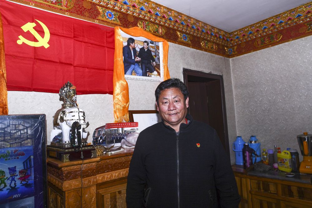 ↑ 尕瑪松保家的醒目位置懸掛著習(xí)近平與他的合影。