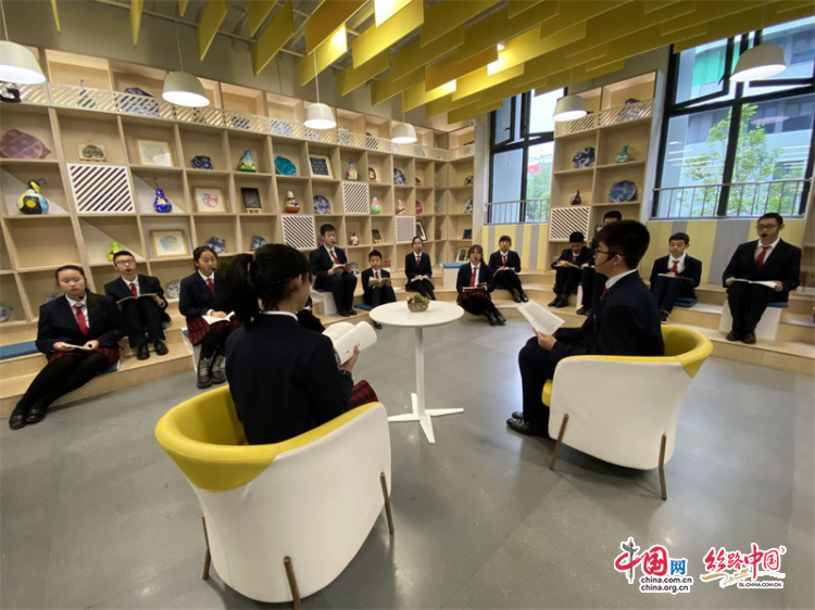 隨后,媒體代表們參觀了學校思維碰撞、巖彩壁畫、未來校園、牛仔花園等特色展區(qū)。在學校朗讀角,七年級的張語桐手捧一本《失群之鳥》詩集,看得入迷。她喜歡看科幻小說和人物傳記,開放的讀書角就成了她和小伙伴常來的地方,位于教室另一個側的“思維碰撞”讀書分享區(qū),也隨時可以跟同學們交流讀書心得。