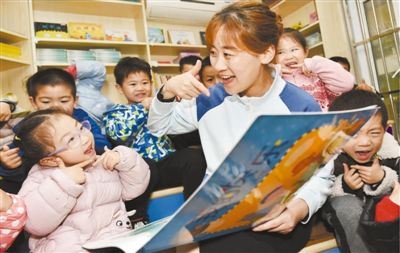 江蘇省南京市建鄴區(qū)一家幼兒園內,老師為孩子們閱讀繪本故事。方東旭攝(影像中國)
