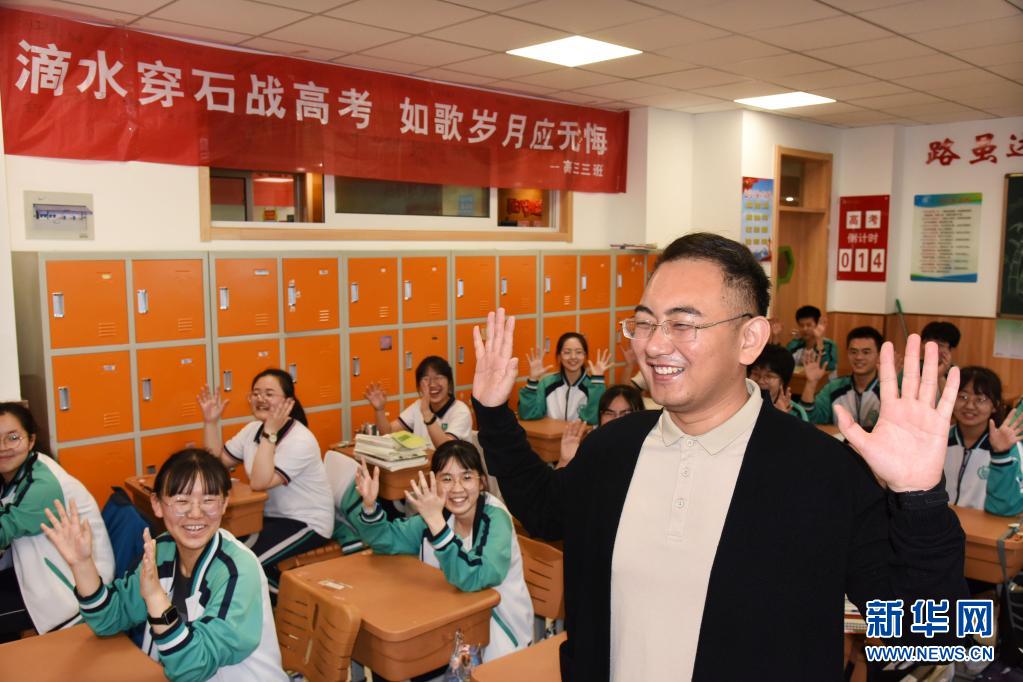 5月23日,青島通濟實驗學校高三學生在簽名板上留言相互鼓勵。新華社記者 李紫恒 攝