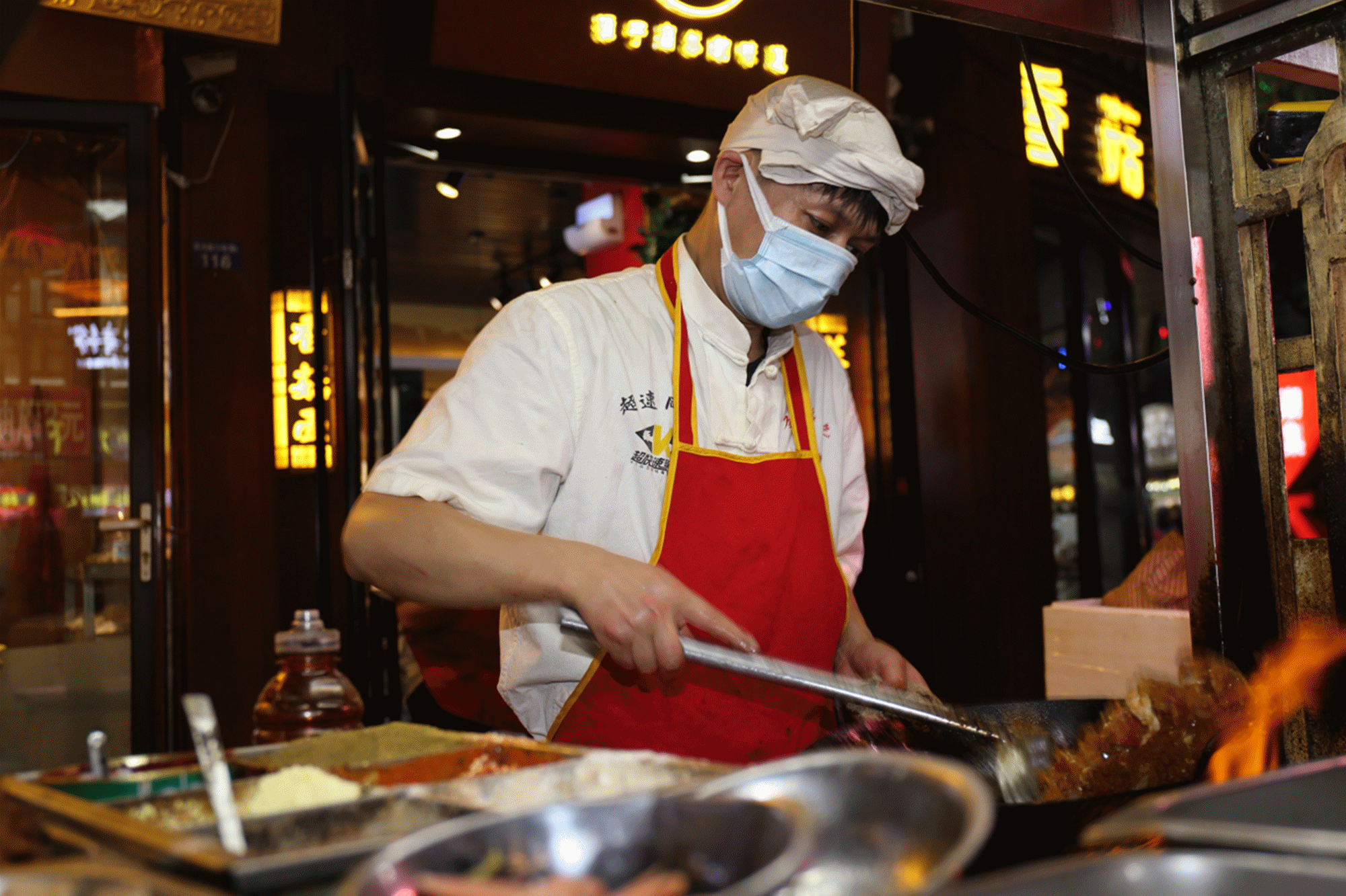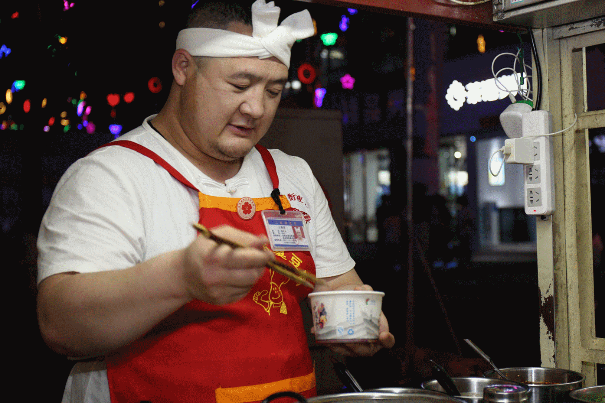 二道街,從18:00開始,道路兩旁才多了一些忙碌的身影。準(zhǔn)備食材、搭爐灶、擺桌椅,商販們一天的工作開始了。隨著人流逐漸增多,道路也變得擁擠起來(lái)。這種熙熙攘攘的氛圍,讓人心里感到特別踏實(shí)。