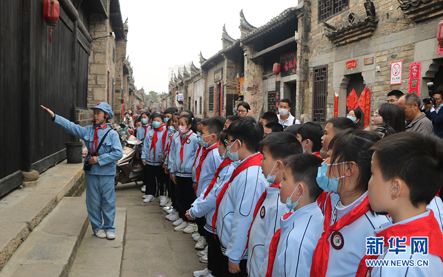 圖為紅安縣將軍城小學(xué)“小小紅色講解員”假期義務(wù)講解家鄉(xiāng)紅色歷史。新華網(wǎng)發(fā)