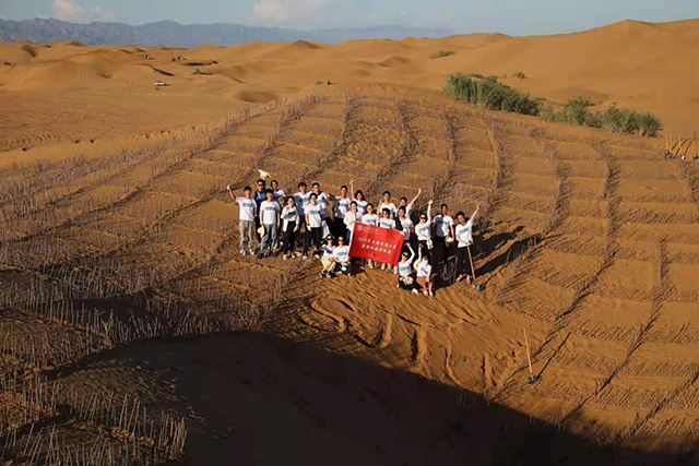 在6年的時(shí)間里,劉智卓從十個(gè)人的小團(tuán)隊(duì)開始干起,逐漸創(chuàng)立綠格公益團(tuán),帶領(lǐng)更多的人在甘肅、內(nèi)蒙等地參與治沙,“交大林”開始在大漠扎根。劉智卓認(rèn)為,“一個(gè)人的力量或者一個(gè)學(xué)校的力量治理沙漠還是有限的,要發(fā)動(dòng)越來越多的學(xué)生參與進(jìn)去,才有可能真正做出一些貢獻(xiàn)。”因而,招募志愿者的范圍也逐漸拓展到更多的高校,并且和浙江大學(xué)、華東師范大學(xué)、四川大學(xué)等高校社團(tuán)開展合作,帶動(dòng)更多的人參與到治沙行動(dòng)當(dāng)中,截至今年,綠格公益團(tuán)招募的志愿者已經(jīng)超過一千人。