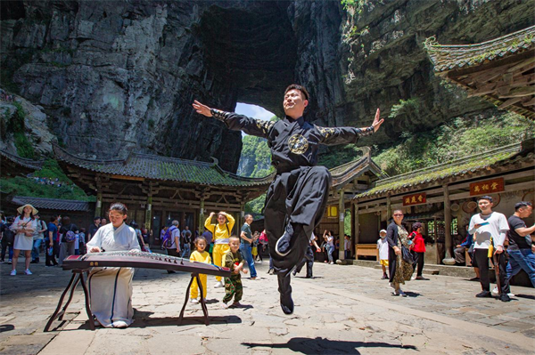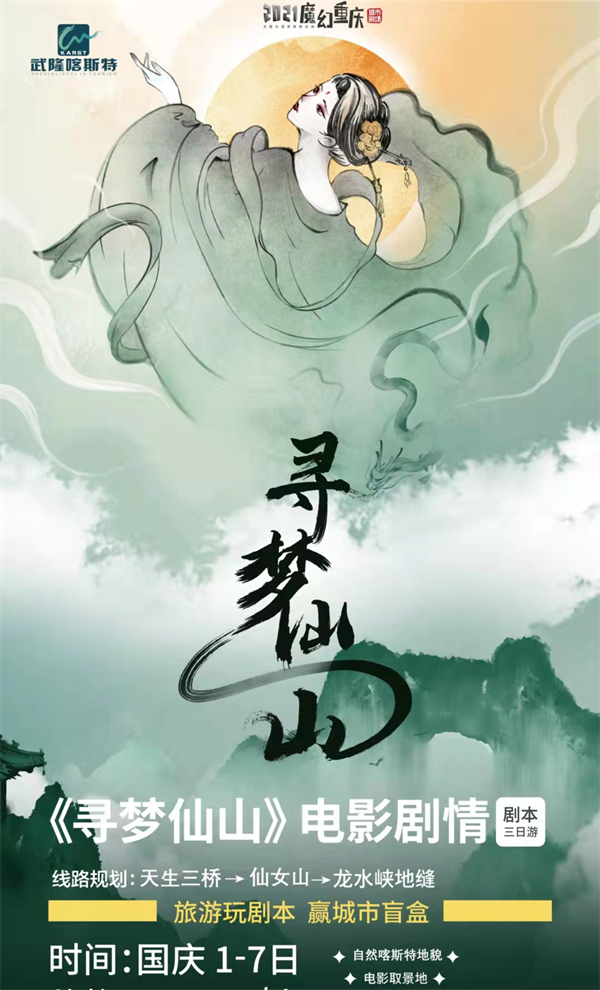 作為國內(nèi)熱門的影視取景地,武隆憑借獨(dú)特的自然風(fēng)光,吸引了包括《滿城盡帶黃金甲》、《變形金剛4》、《爸爸去哪兒2》、《三生三世十里桃花》、《我們十七歲》等眾多影視及綜藝節(jié)目到此拍攝取景,現(xiàn)已成為重慶旅游的文化名片。鬼斧神工的自然景觀,加上濃郁的影視文化氛圍,讓《尋夢仙山》沉浸式劇本殺更新奇和神秘。國慶出發(fā)去武隆玩“劇本殺”,讓我們拭目以待吧!