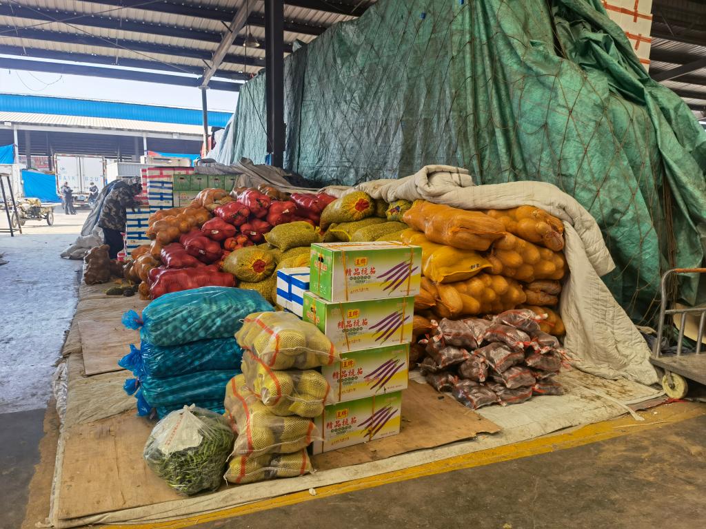 圖為青藏高原農副產品集散中心內的蔬菜攤位。 新華社記者 王浡 攝