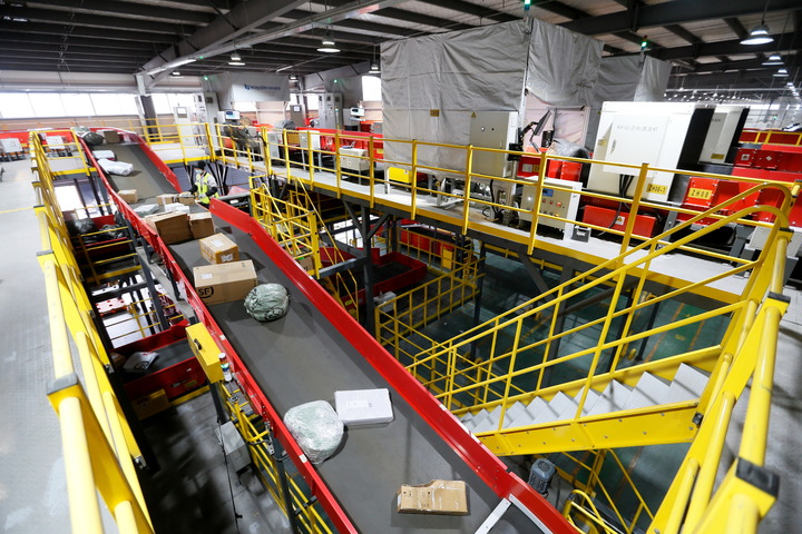 “雙11”期間,青島某物流分撥中心,全自動(dòng)智能分揀系統(tǒng)正在分揀包裹。新華社發(fā)(梁孝鵬 攝)