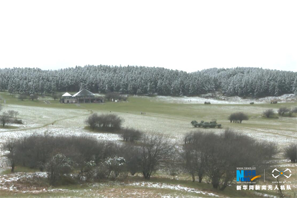受強冷空氣影響,11月22日,重慶市武隆區(qū)仙女山景區(qū)迎來了大范圍降雪天氣,積雪厚度最高達到5厘米。整個景區(qū)的森林和草原都被冰雪所覆蓋,呈現(xiàn)出一派瑞雪豐年的景象。