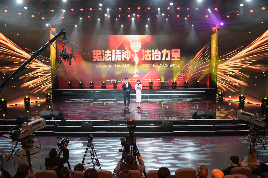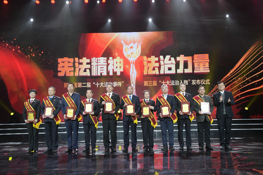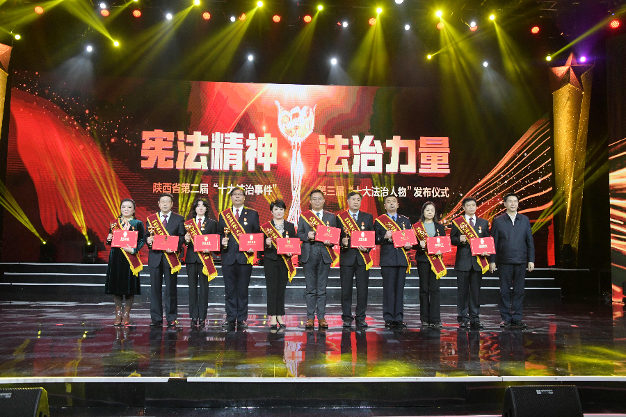 發(fā)布儀式現(xiàn)場(chǎng)播放了“十大法治事件”“十大法治人物”及提名獎(jiǎng)的先進(jìn)事跡短片,揭曉了陜西省第二屆“十大法治事件”、第三屆“十大法治人物”及提名獎(jiǎng)獲得者。“全國(guó)首創(chuàng)黨委(黨組)書記點(diǎn)評(píng)法治工作機(jī)制切實(shí)夯實(shí)‘一把手’履行法治建設(shè)責(zé)任”等10個(gè)事件被評(píng)為第二屆“十大法治事件”、“陜西出臺(tái)自由貿(mào)易試驗(yàn)區(qū)條例助推自貿(mào)區(qū)高質(zhì)量發(fā)展”等10個(gè)事件被評(píng)為第二屆“十大法治事件”提名獎(jiǎng),西安交通大學(xué)法學(xué)院二級(jí)教授馬治國(guó)等10名同志被評(píng)為第三屆“十大法治人物”、咸陽市中級(jí)人民法院速裁中心主任李春麗等10名同志被評(píng)為第三屆“十大法治人物”提名獎(jiǎng)。
