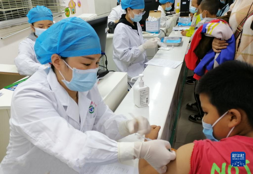 廣西憑祥市夏石鎮(zhèn)中小學(xué)生在接種疫苗(11月18日攝)。新華社發(fā)(憑祥市夏石鎮(zhèn)中心衛(wèi)生院供圖)