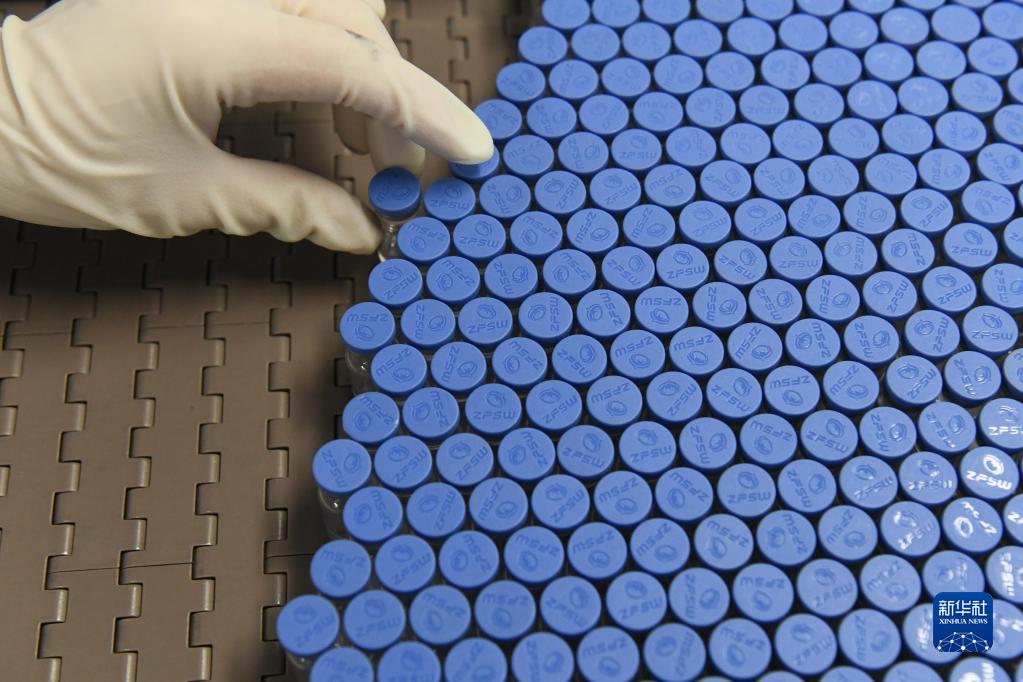 在安徽智飛龍科馬生物制藥有限公司新冠疫苗生產(chǎn)線上,工作人員對(duì)疫苗進(jìn)行包裝(5月20日攝)。新華社記者 黃博涵 攝