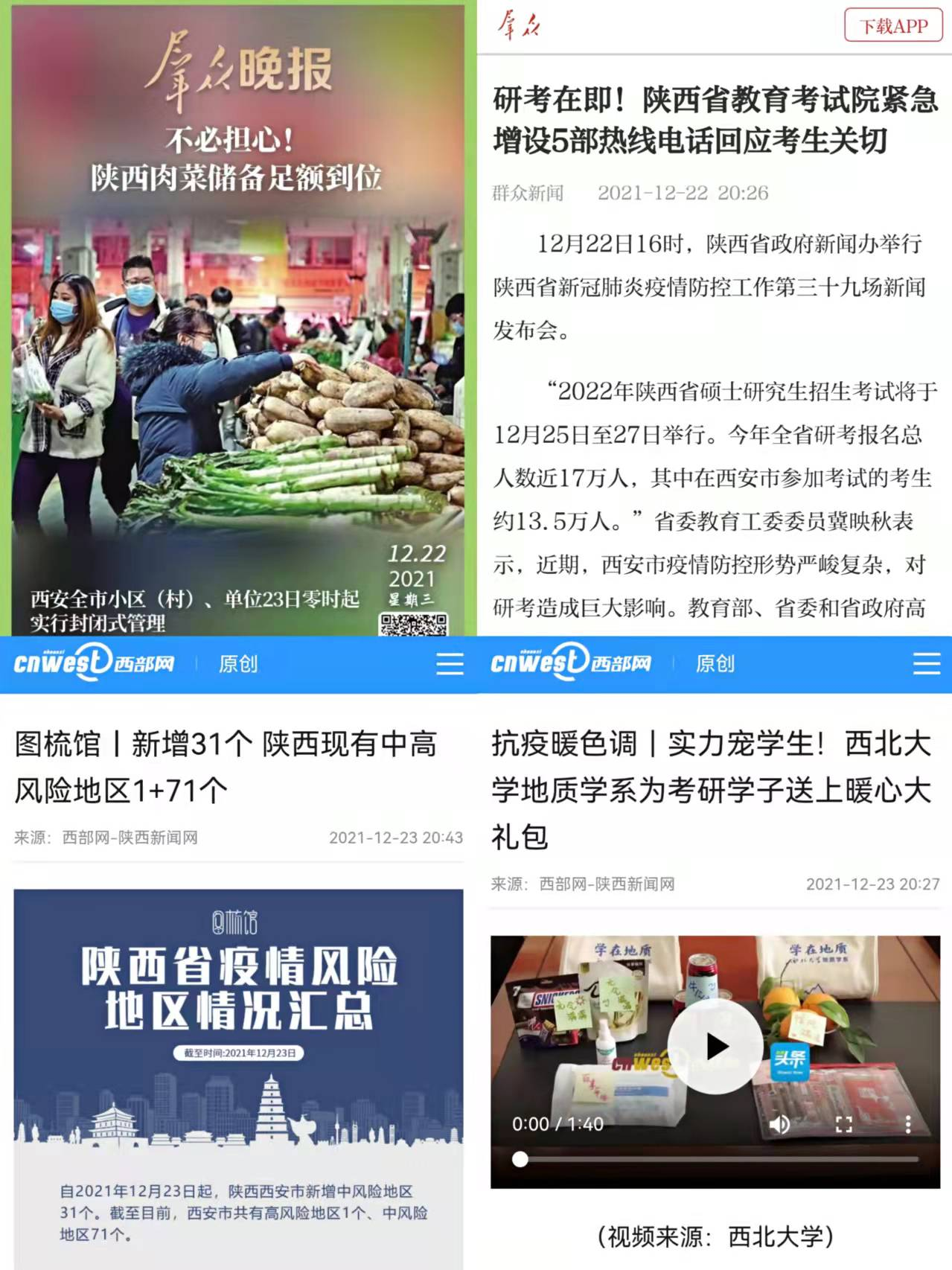 從關(guān)注尿毒癥患者如何及時透析到封閉化管理市民生活怎樣,從西安防疫升級首日見聞到記者答疑確診病例為何增長迅速,從新一輪核酸檢測現(xiàn)場到蔬菜保供打消市民恐慌……新華社記者每天從城市的各個角落發(fā)回第一手消息,用他們的筆觸、鏡頭向廣大網(wǎng)民展現(xiàn)西安城的堅守和溫暖,最大程度還原這座城市疫情防控過程中每一個環(huán)節(jié)的進展與成效。