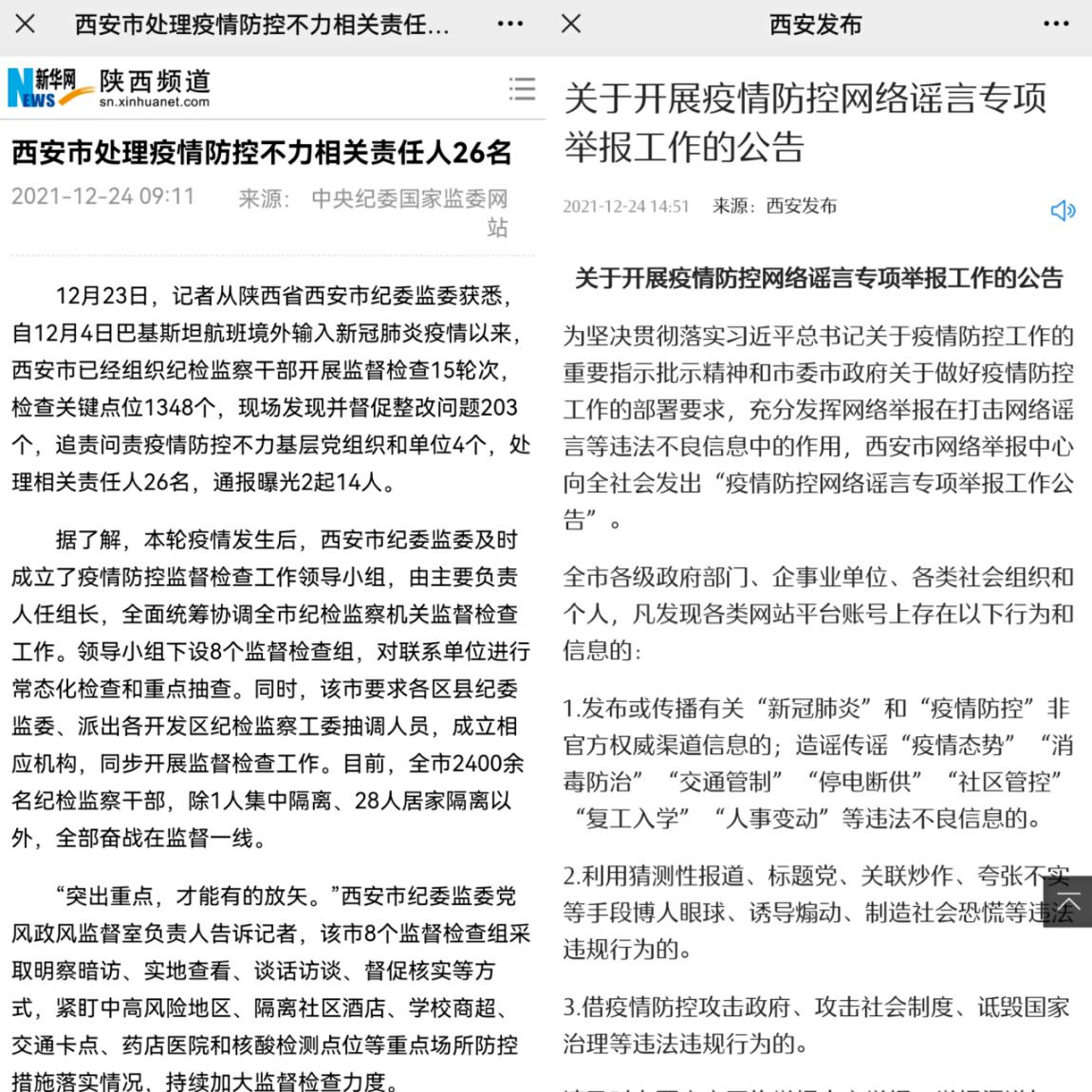 對在疫情防控工作中不擔(dān)當(dāng)、不作為,推諉扯皮、消極應(yīng)付等形式主義官僚主義問題,西安市嚴(yán)肅查處、精準(zhǔn)問責(zé)、及時曝光,進一步嚴(yán)明疫情防控紀(jì)律,壓緊壓實各方責(zé)任。目前,西安市已經(jīng)組織紀(jì)檢監(jiān)察干部開展監(jiān)督檢查15輪次,檢查關(guān)鍵點位1348個,現(xiàn)場發(fā)現(xiàn)并督促整改問題203個,追責(zé)問責(zé)疫情防控不力基層黨組織和單位4個,處理相關(guān)責(zé)任人26名,通報曝光2起14人。