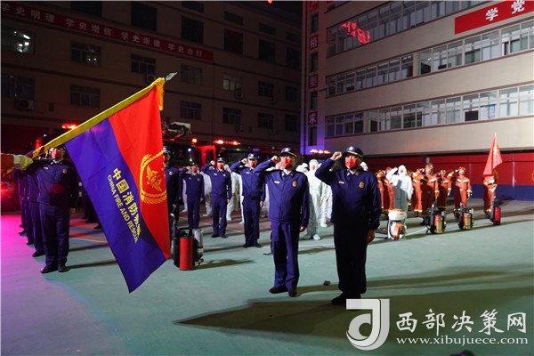 大家宣誓:“堅決履行國家綜合性消防救援隊伍的神圣使命,英勇頑強,不怕犧牲……為維護人民生命財產安全和社會穩(wěn)定,貢獻自己的力量!”支隊舉行疫情防控專業(yè)處置隊出征儀式后,兩支隊伍深夜奔赴疫情防控一線戰(zhàn)場,守護延安城。