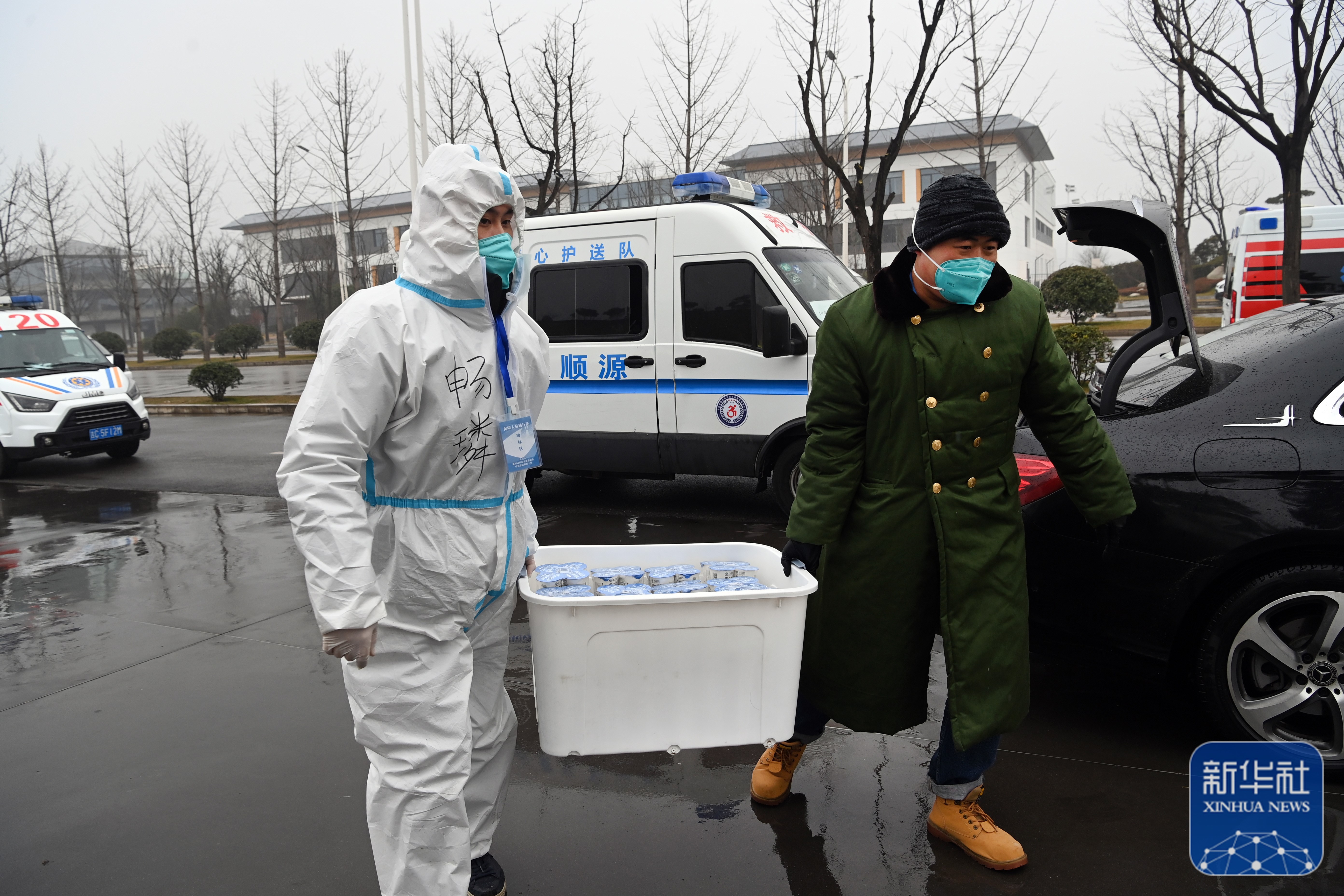 1月8日,志愿者在為防疫一線(xiàn)人員運(yùn)送“愛(ài)心餐”。