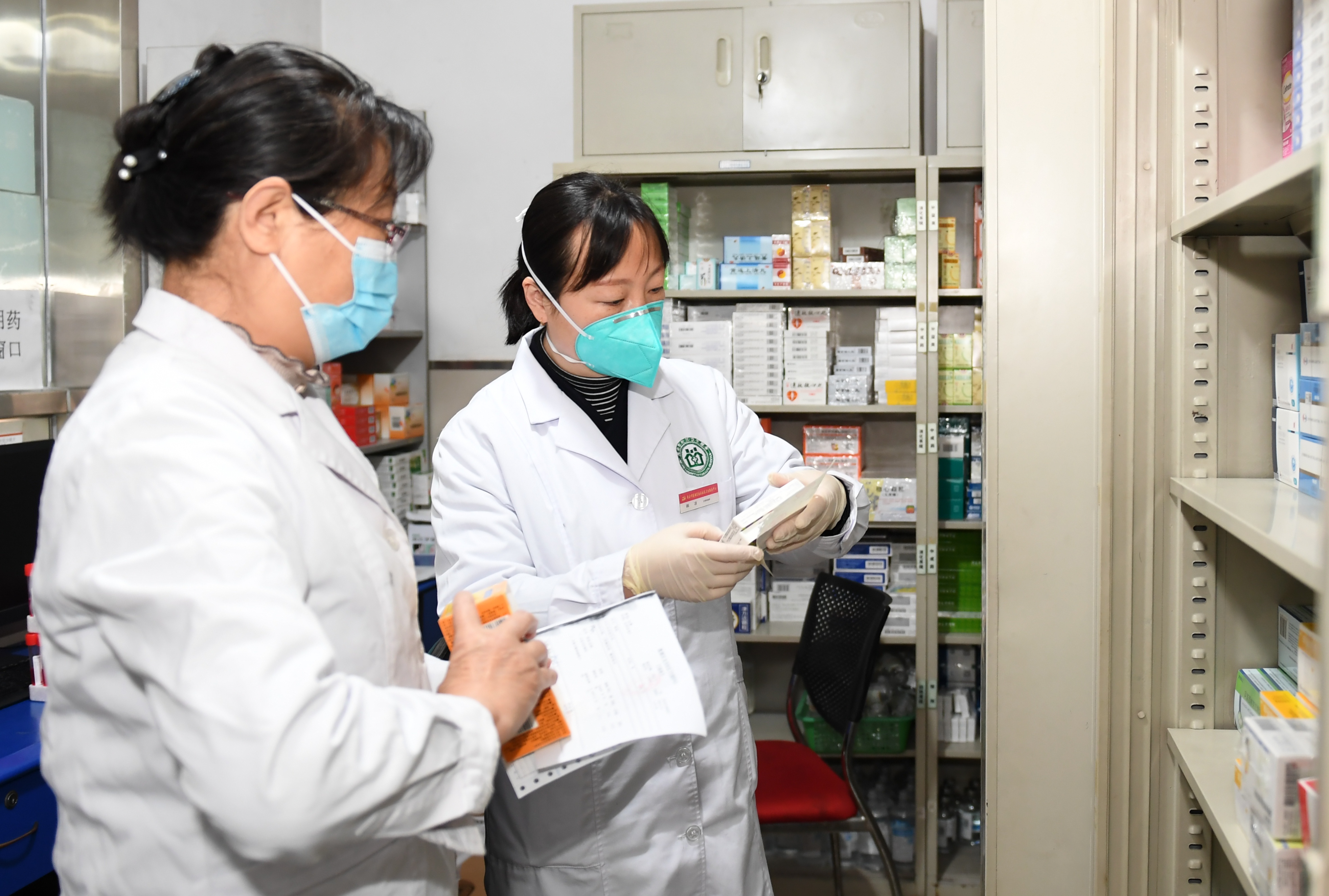 1月8日,在西安市蓮湖區(qū)北關(guān)社區(qū)衛(wèi)生服務(wù)中心,醫(yī)務(wù)人員在藥房為電話就醫(yī)的患者取藥。新華社記者 李一博 攝