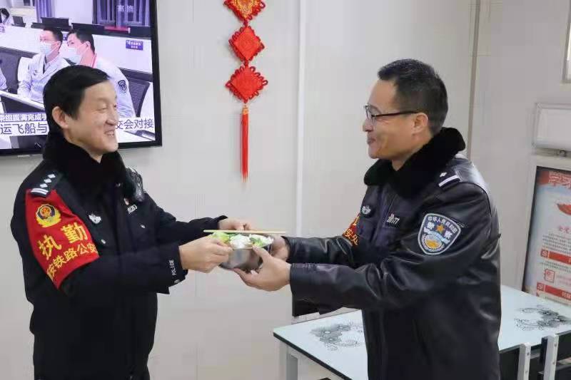 新華社客戶端西安1月10日電(都紅剛 王小東)“感謝你連日來堅(jiān)守在疫情一線,祝你節(jié)日快樂!生日快樂!”在第二個(gè)中國警察節(jié)來臨之際,正在西安火車站疫情防控崗上值班的58歲民警劉波收到了西安站派出所黨支部送來的一碗長壽面,捧著這碗特殊時(shí)期的“生日蛋糕,”和警察節(jié)同一天生日的劉波感動(dòng)不已。