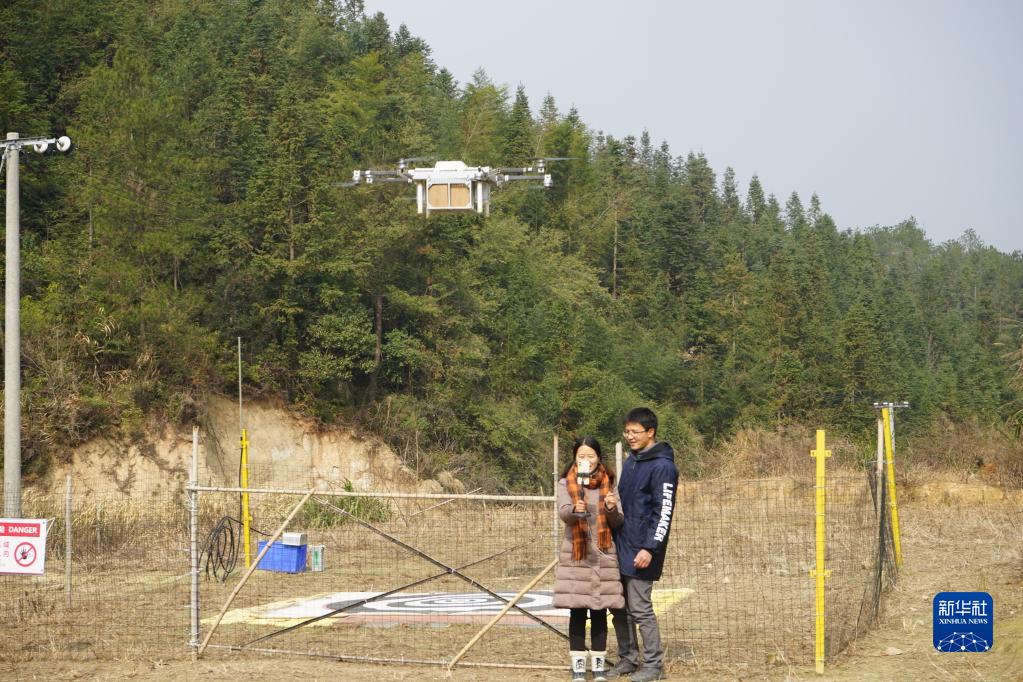 伴隨著螺旋槳的嗡鳴聲,約兩米長(zhǎng)的無人機(jī)載著打包好的土雞、雞蛋從機(jī)坪上穩(wěn)穩(wěn)升空,飛往山外的無人機(jī)運(yùn)營中心。