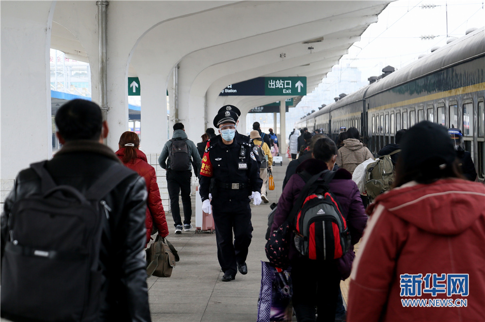 2022年1月17日列車始發(fā)前,乘警汪保山在站臺(tái)上組織旅客