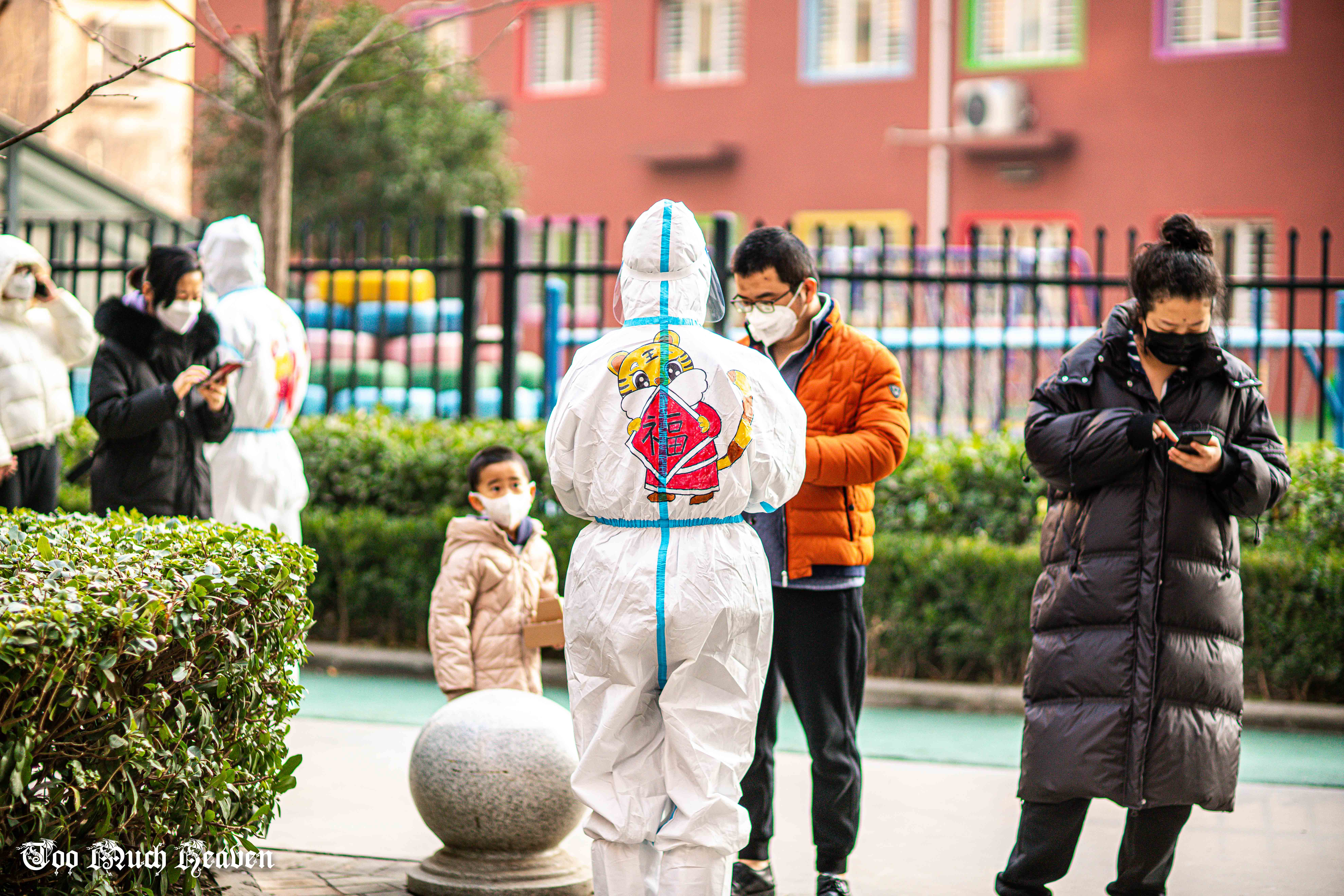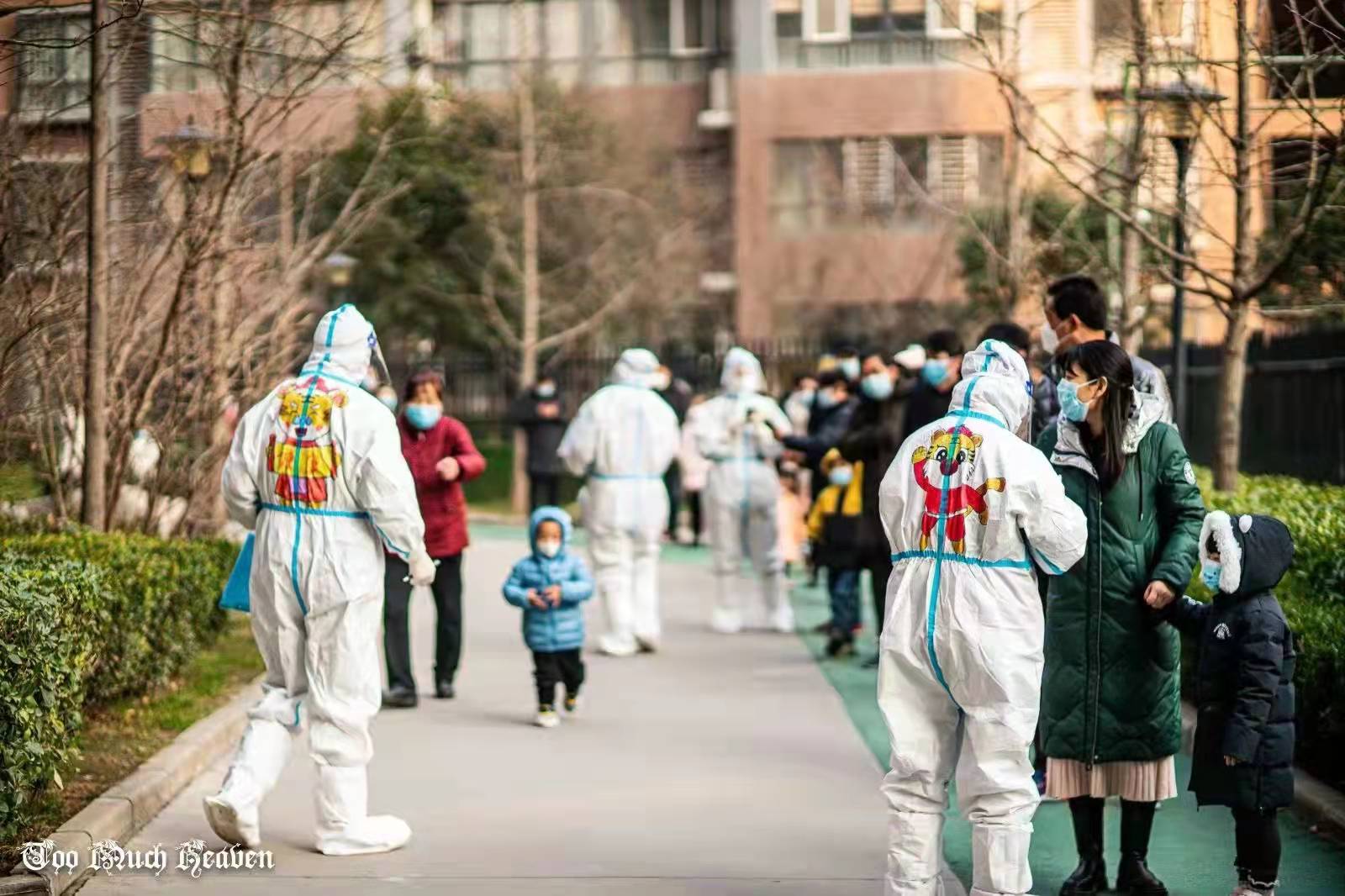 18日,在小區(qū)核酸篩查現(xiàn)場,穿著虎年新春主題圖案防護(hù)服的“大白”引發(fā)了全場圍觀。小朋友希望和他們合影,小區(qū)里的攝影愛好者也拿著專業(yè)的器材來拍攝,還制作成短視頻發(fā)在業(yè)主群里分享快樂。大家紛紛表示“原來就快要到虎年了!”“年的味道一下子濃起來了!”有的小朋友采完樣都不愿意上樓,纏著爸爸媽媽問:“下次做核酸還能見到小老虎嗎?”