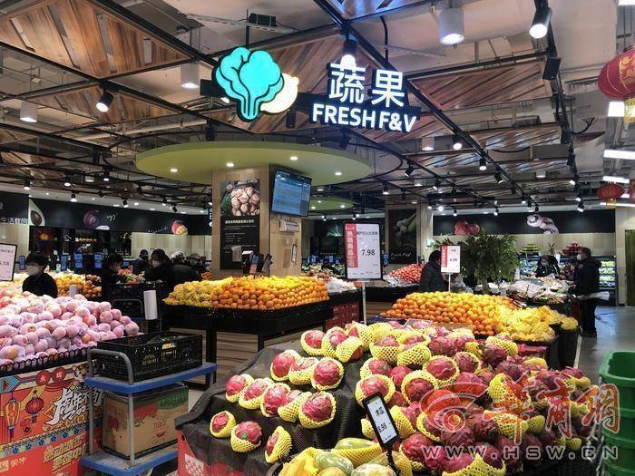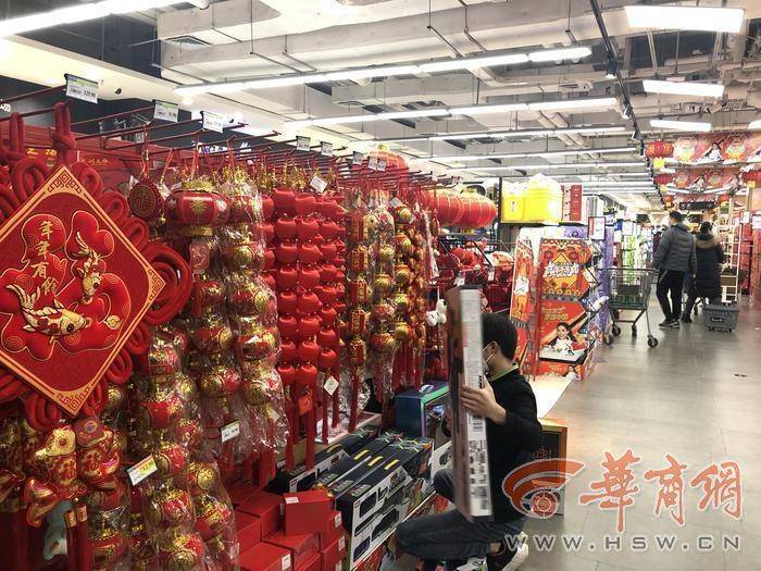 記者體驗了一下,超市嚴(yán)格落實防疫要求,顧客掃碼,憑綠碼進(jìn)入。超市門口,有燈籠、“福”字等年貨。超市播著過年喜慶的音樂,貨物齊全,市民們在有序購物,工作人員正在給部分貨物加貨。
