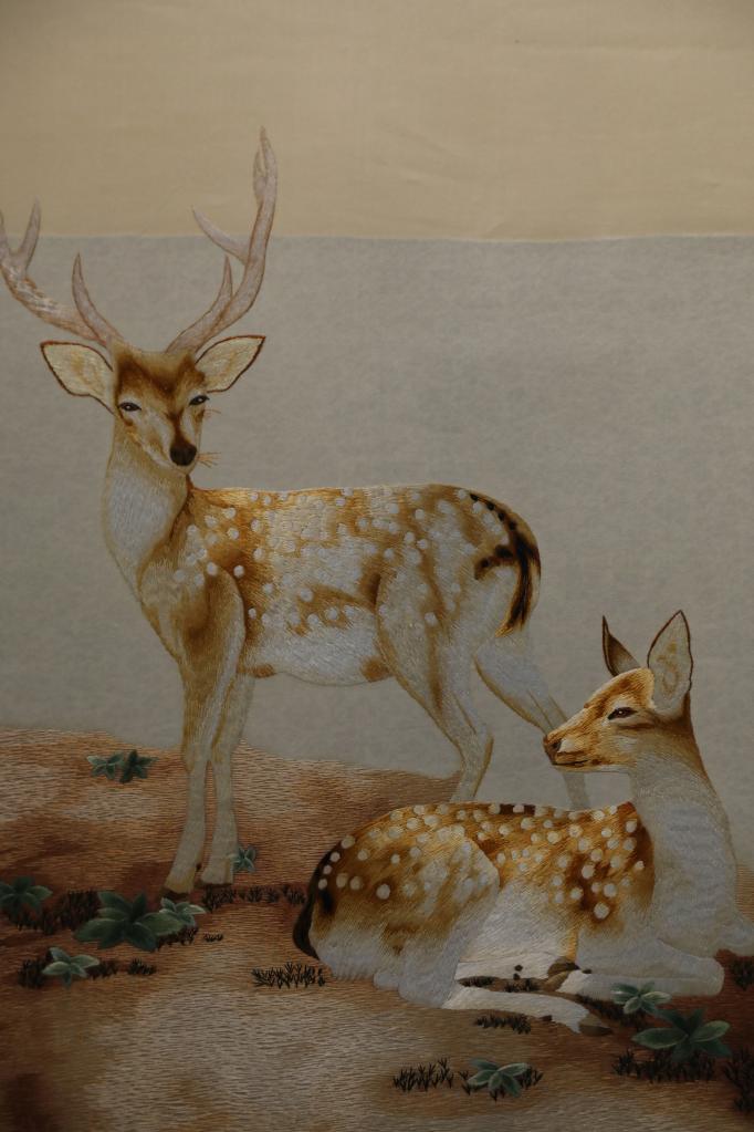 “你看這兩幅都是貴南藏繡,一幅生硬、粗獷,另一幅靈動(dòng)、細(xì)膩,就是要通過學(xué)習(xí)其他繡法,不斷摸索創(chuàng)新,讓藏繡越來(lái)越精美。”拉毛葉忠拿著這兩幅藏羚羊作品解釋。作為省級(jí)非物質(zhì)文化遺產(chǎn)項(xiàng)目代表性傳承人,拉毛葉忠一直在思考,如何讓傳統(tǒng)藏繡煥發(fā)新活力。