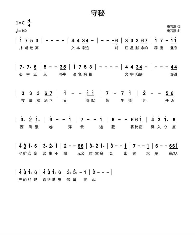 慶祝建黨百年獲獎(jiǎng)歌曲作品選集——《守秘》詞曲。